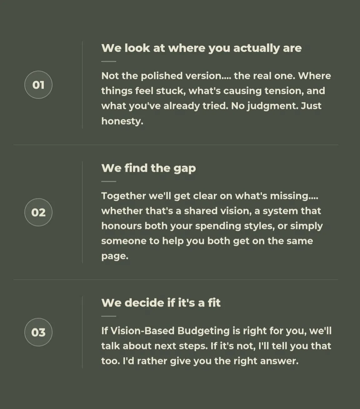 This is a 30-minute discovery conversation to see if Vision-Based Budgeting is the right fit for you and your spouse.
